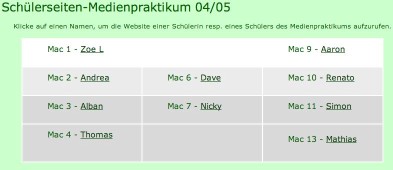 Die Startseite der Schülerseiten des Medienpraktikums auf www.bezendingen.ch sieht sehr trocken aus.